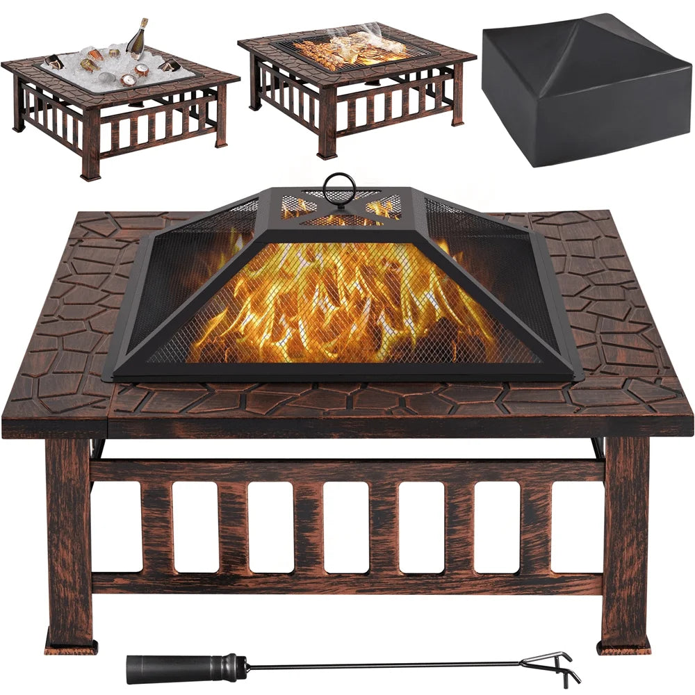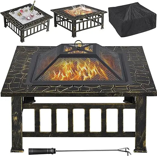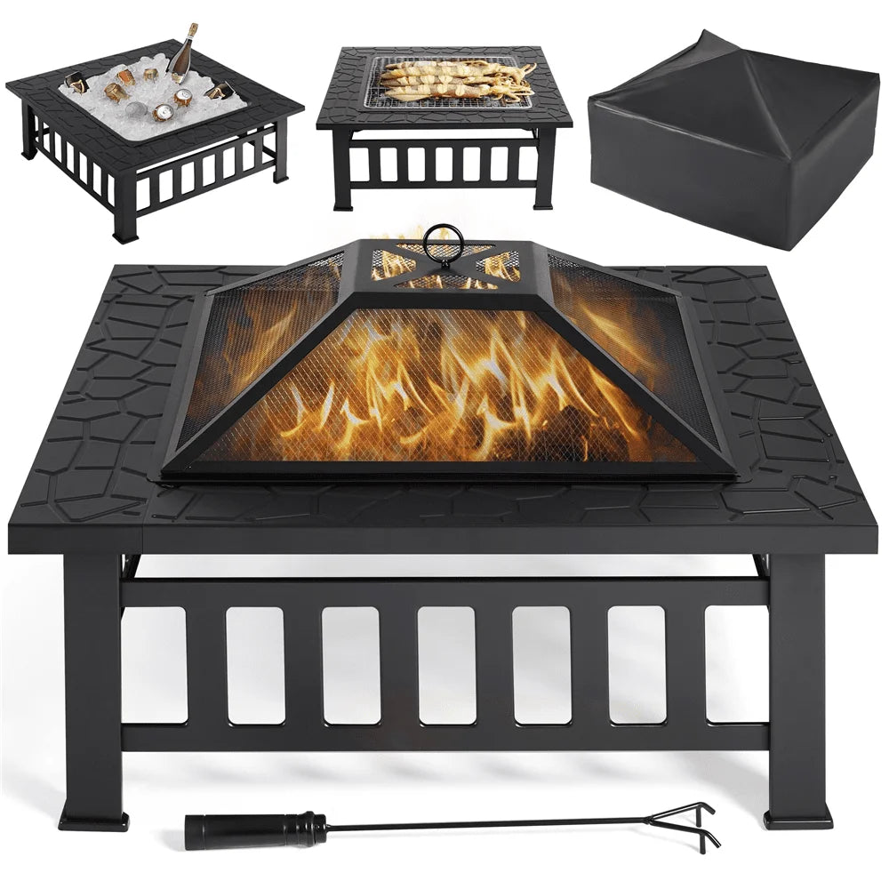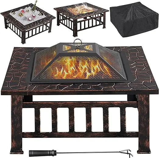【Heat-resistant Metal Firepit】Constructed from solid metal with a heat-resistant finish, this square fire pit boasts high strength and good durability. The fire bowl can withstand high temperatures of up to 600℃/1112℉.