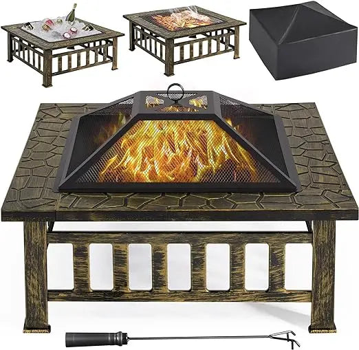 【Joy All Year Round】This outdoor fire pit introduces cozy warmth, ample light and a captivating atmosphere to your backyard/garden/patio during cold nights. Not only for cool/cold seasons, this square fire pit is also perfect for Spring/Summer barbecue parties.